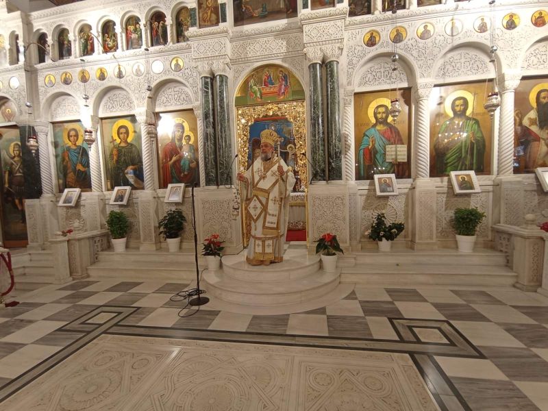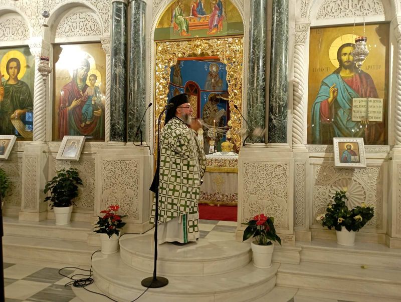 Ο Σεβασμιώτατος άγιος Γόρτυνος χοροστάτησε στον Όρθρο, προεξήρχε στη Θεία Λειτουργία και κήρυξε τον θείο λόγο με έναυσμα την αποστολική περικοπή (Ρωμ. η΄, 14-21).