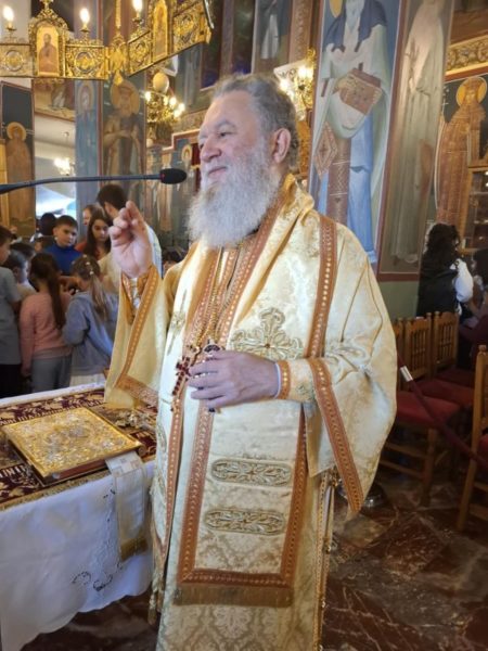 Αρχικά ο Σεβασμιώτατος καλωσόρισε τους μαθητές, ευχαρίστησε για την πρόσκληση που του απηύθυνε ο συλλόγων διδασκόντων και ο σύλλογος γονέων, ώστε να τελέσει για τους μαθητές την Θεία Λειτουργία επεξηγηματικά, στη διάρκεια της οποίας οι μαθητές έψαλαν και συμμετείχαν ενεργά.