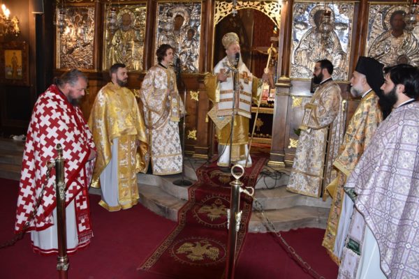Το πρώτο και κύριο μέρος της Συνάξεως ήταν η Αρχιερατική Θεία Λειτουργία στον Ιερό Ναό Αγίου Νικολάου Χαλκίδος. Προ της ενάρξεώς Της, στο τέλος του Όρθρου, σύμφωνα με την τάξη της Εκκλησίας, έγινε και η Τελετή της Λιτάνευσης και Προσκύνησης του Τιμίου Σταυρού, υπό του Σεβασμιωτάτου Μητροπολίτου Χαλκίδος κ. Χρυσοστόμου, με τη συμμετοχή Κληρικών της Ιεράς μας Μητροπόλεως και παρεπιδήμων, όπως και πυκνού εκκλησιάσματος.