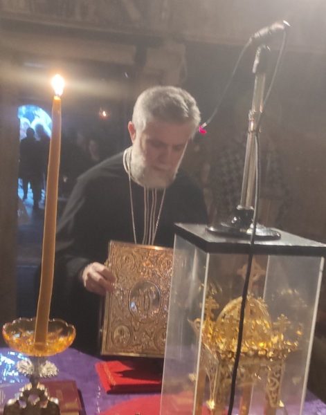 Την Τετάρτη 15 Μαρτίου 2023 το απόγευμα, συνοδευόμενος από τον Πρωτοσύγκελλό του, Αρχιμ. Νικόδημο Ευσταθίου και τον Διάκ. Σταύρο Καλαφάτη, ο Σεβασμιώτατος μετέβη στην Ιερά Μονή Παναγίας Περιβλέπτου Πολιτικών, όπου χοροστάτησε στον Εσπερινό και προέστη στην Θεία Λειτουργία των προηγιασμένων Τιμίων Δώρων, με συλλειτουργούς τους συνοδούς του Κληρικούς και τον Πρωτοπρεσβ. Αργύριο Στουραΐτη-Εφημέριο της Ενορίας Πολιτικών.