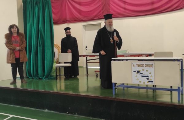 Την Παρασκευή 17 Μαρτίου 2023, το πρωί, ανταποκρινόμενος στην πρόσκλησή τους, ο Σεβασμιώτατος συνάντησε τους Καθηγητές και τους μαθητές του 4ου Γυμνασίου Χαλκίδος, όπου τον καλωσόρισε η Διευθύντρια κ. Ελένη Καρτεσίδου, παρόντος και του Εφημερίου της πλησιέστερης Ενορίας, Οικον. Ιωάννου Γκρινιάρη. Ακολούθησε επικοινωνία με τους μαθητές και τις μαθήτριες, οι οποίοι είχαν, στη συνέχεια, εποικοδομητικό διάλογο με τον Μητροπολίτη τους.