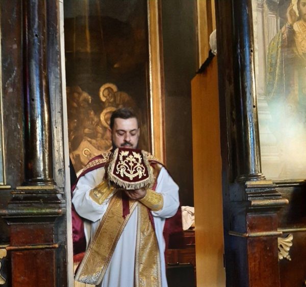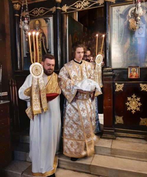 Στην Θεία Λειτουργία διηκόνησαν οι Υποψήφιοι Κληρικοί, είτε στο Ιερό Βήμα, είτε βοηθώντας τους δύο Χορούς των εκλεκτών Ιεροψαλτών του Ναού κ. Σπυρίδωνος Σιμιτζή και κ. Δήμου Τσίμπου, ενώ ετελέσθησαν κατά την τάξη, η εις Πρεσβύτερον χειροτονία του π. Χρυσάνθου Χριστοφή και εν συνεχεία η εις Διάκονον Χειροτονία του κ. Χρήστου Ραμαντανάκη, εγγάμου, πατρός ενός τέκνου και υιού του Εφημερίου της Ενορίας Παναγίας Παραβουνιώτισσας Ερετρίας, Πρωτοπρεσβ. Χαραλάμπους Ραμαντανάκη.