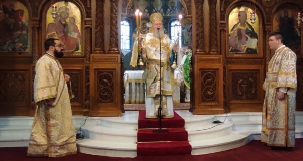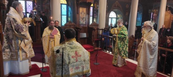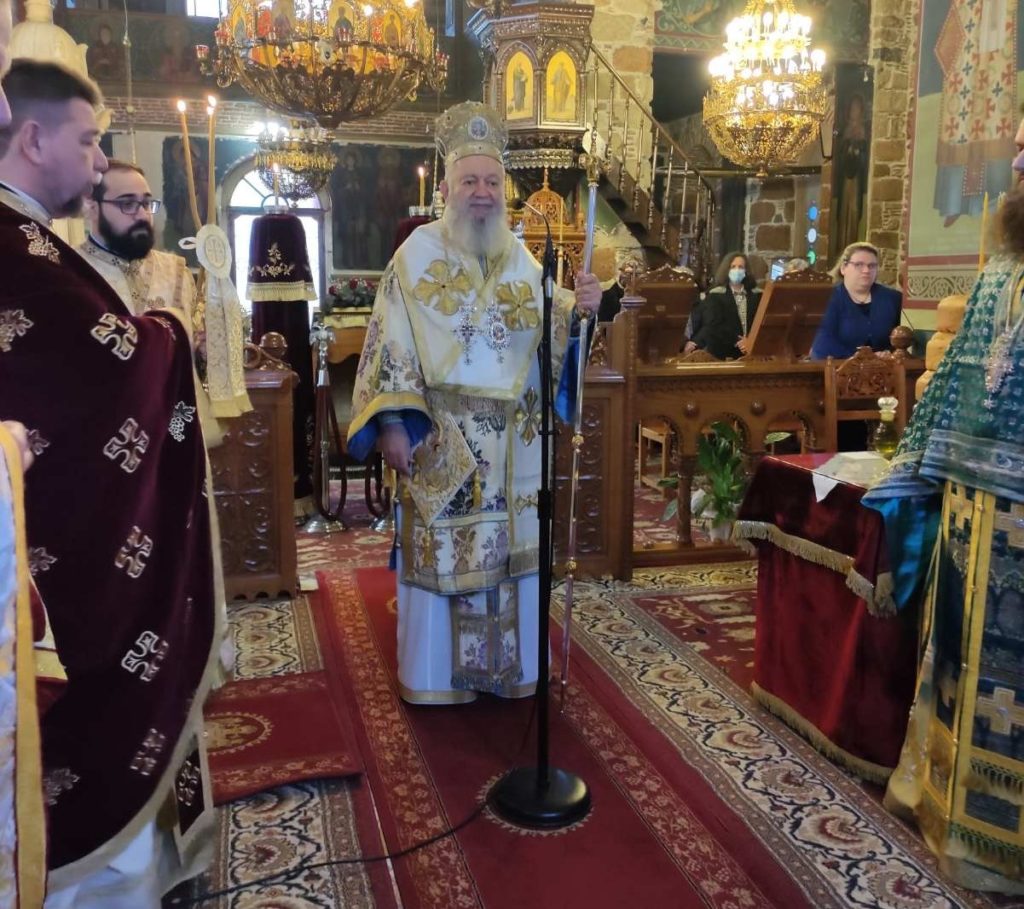 Εκεί, με την συμμετοχή του Πρωτοσυγκέλλου του Αρχιμ. Νικοδήμου Ευσταθίου, του Προϊσταμένου της Ενορίας Αρχιμ. Αιμιλιανού Χρήστου του δευτερεύοντος Εφημερίου Πρωτοπρεσβ. Γεωργίου Πολυκαρπίδη και του Διακ. Σταύρου Καλαφάτη, χοροστάτησε κατά την Ακολουθία του Όρθρου, προεξήρχε στην Θεία Λειτουργία και κήρυξε τον θείο λόγο, αναφερθείς στο γεγονός της Υπαπαντής, όπως περιγράφεται στους συνοπτικούς ευαγγελιστές.