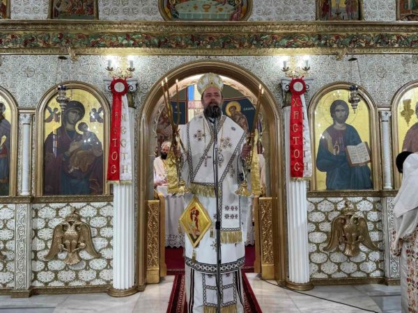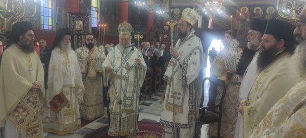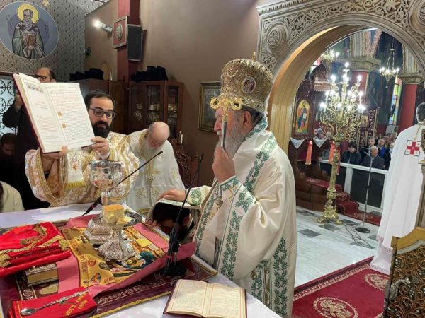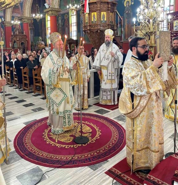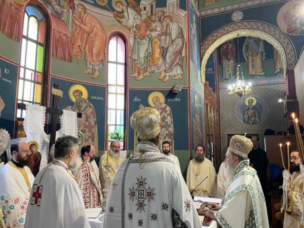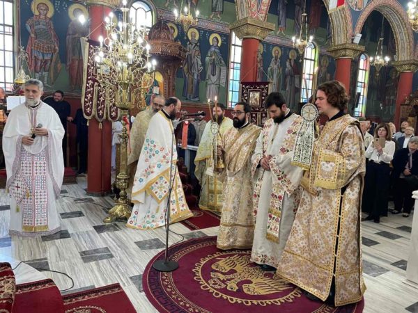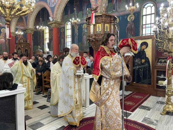 Εν συνεχεία, τελέσθηκε το Αρχιερατικό συλλείτουργο, με τη συμμετοχή Κληρικών από την Χαλκίδα και τα περίχωρά της, την παρουσία αντιπροσωπίας της Ιεράς Μονής Δοχειαρίου, με την οποία ο νέος Διάκονος συνδέεται πνευματικά, αφού εκεί εγκαταβιώνουν δύο κατά σάρκα συγγενείς του.