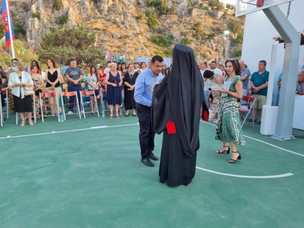 Ο π. Νεκτάριος μετέφερε τις πατρικές συγχαρητήριες ευχές του Σεβασμιωτάτου και επιπρόσθετα συνεχάρη τον Δήμο Ύδρας και την Περιφέρεια Αττικής για την συγχρηματοδότηση του σπουδαίου αυτού έργου της ανακαίνισης, ως και την δραστήρια Διευθύντρια του Σχολείου κ. Σταματίνα Ρούσση.