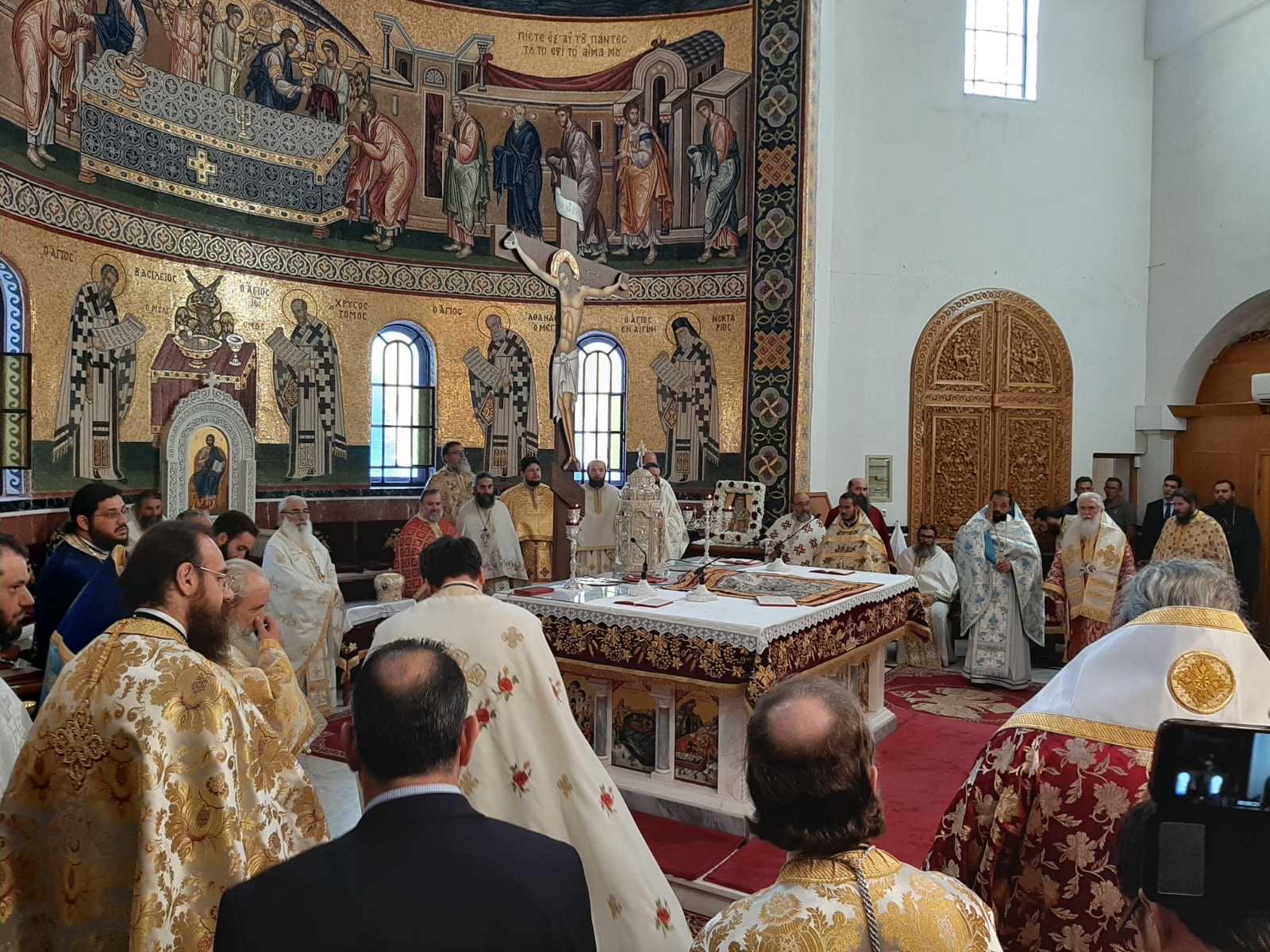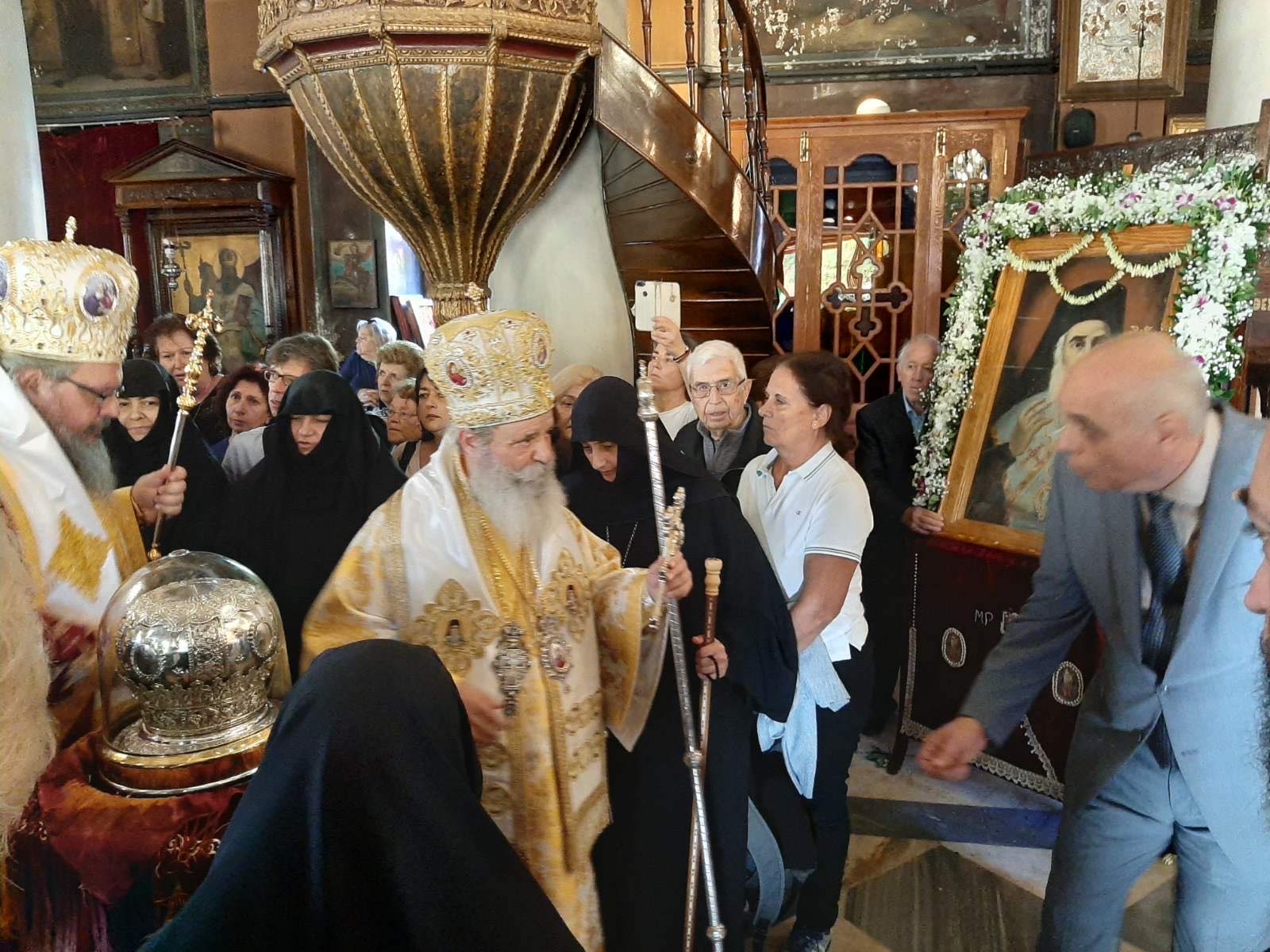 Το πρωί στον Ιερό Ναό του Αγίου Νεκταρίου, τελέσθηκε ο όρθρος, Αρχιερατική Θεία Λειτουργία και δοξολογία.