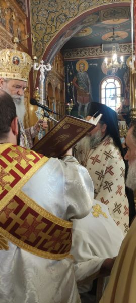 Προ της απολύσεως της Θ. Λειτουργίας εν Εκκλησία πληθούσει χειροθέτησε σε πρωτοπρεσβύτερο τον δραστήριο εφημέριο του εν λόγω Ι. Ν. π. Χαράλαμπο Μυλωνόπουλο.