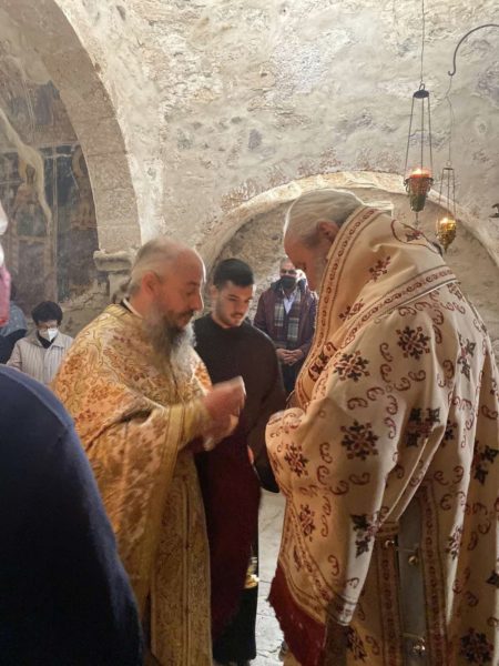 Συλλειτούργησαν ο Πανοσ. Πρωτοσύγκελλος Αρχιμανδρίτης π. Νεκτάριος Δαρδανός και πατέρες της Νήσου Αιγίνης.