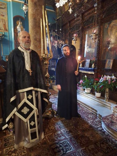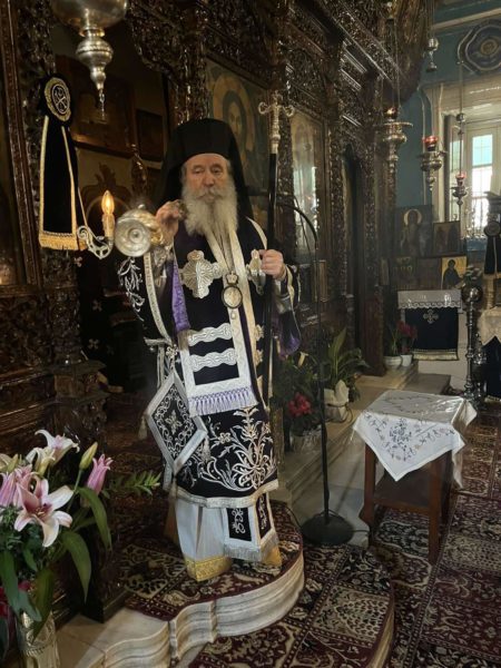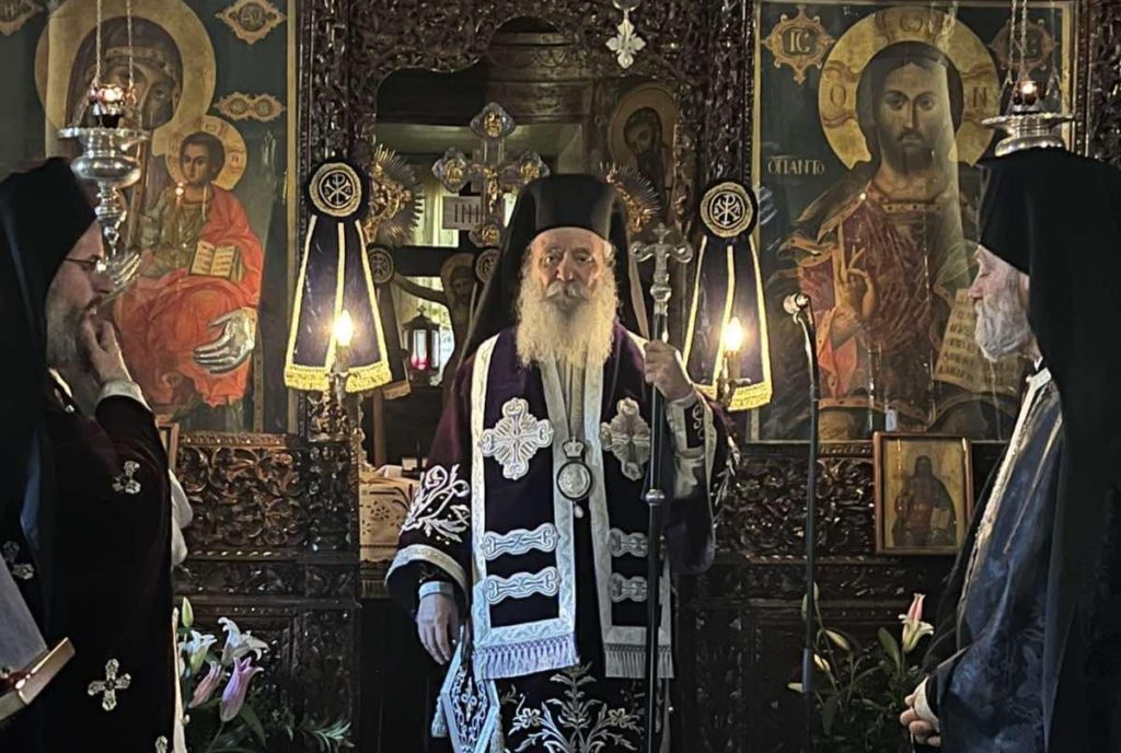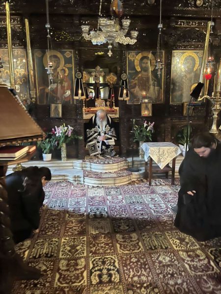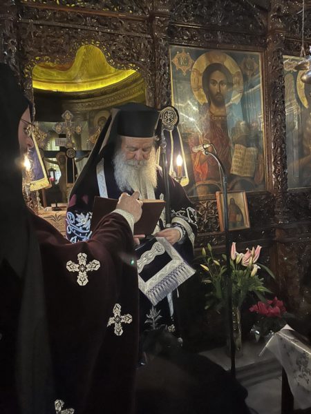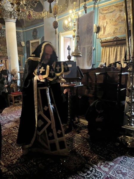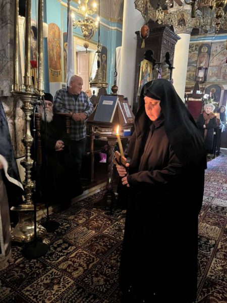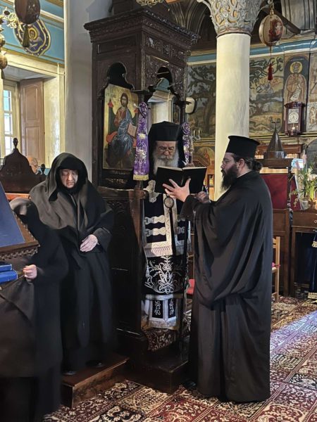 Στο τέλος ετέλεσε την ακολουθία για Ρασοευχή δοκίμου μοναχής της Ιεράς Μονής .