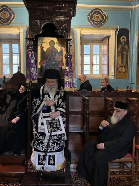 Την Τρίτη της Α’ Εβδομάδος των Νηστειών ,4η Μαρτίου 2025, ο Σεβασμιώτατος Μητροπολίτης Ύδρας, Σπετσών και Αιγίνης κ. Εφραίμ τέλεσε την πρώτη Προηγιασμένη Θ. Λειτουργία της Μ. Τεσσαρακοστής εις την Ιερά Μονή Παναγίας Χρυσολεοντίσσης Αιγίνης, με την συμμετοχή πατέρων της Νήσου.
