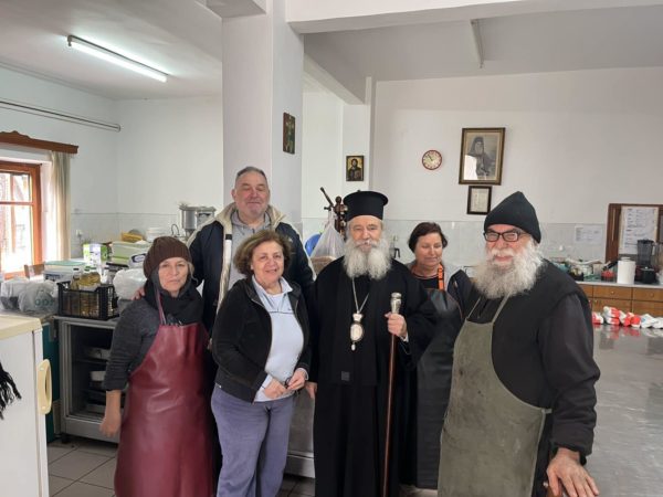 Ακολούθως ο Σεβασμιώτατος επισκέφθηκε τους εθελοντές στο συσσίτιο της Ι. Μητροπόλεως που παρασκευάζει καθημερινά για 80 αναγκεμένους αδελφούς μας, και ενημερώθηκε από τον υπεύθυνο αεικίνητο κληρικό πρωτ. π. Νεκτάριο Κουκούλη.