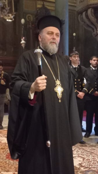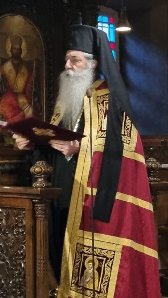 Εν συνεχεία εκ μέρους του Ιερού Κλήρου τον Σεβασμιώτατο προσφώνησε με εόρτιες ευχές ο Πανοσ. Πρωτοσύγκελλος Αρχιμ. π. Νεκτάριος Δαρδανός.