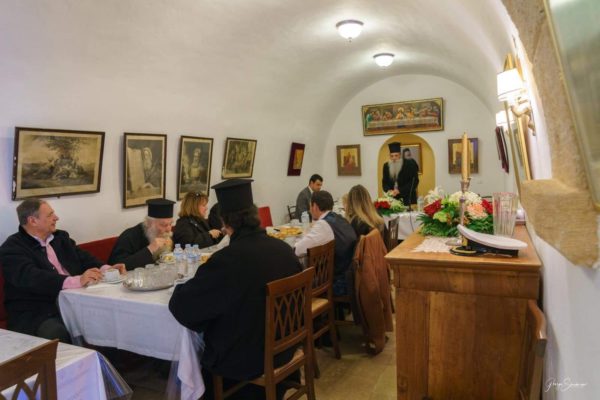 Το μεσημέρι ο Σεβασμιώτατος παρέθεσε γεύμα στις αρχές της νήσου, στους Ιερείς και στους συνεργάτες του Μητροπολιτικού Γραφείου.