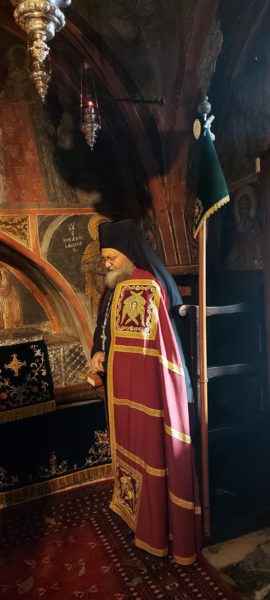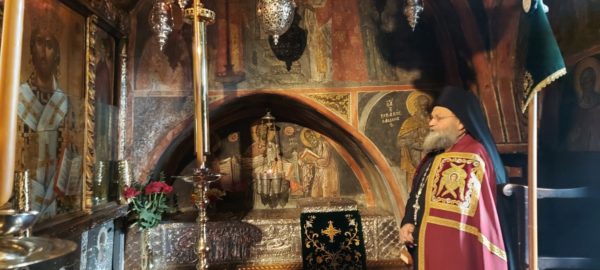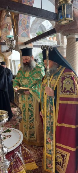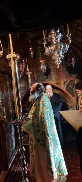 Σήμερα το πρωί τελέσθηκαν στο Μοναστήρι οι προεόρτιες Ιερές Ἀκολουθίες (Όρθρος, Ώρες, Μικρός Εσπερινός και η Θεία Λειτουργία των Προηγιασμένων Τιμίων Δώρων, στο τέλος της οποίας αναγνώσθηκε η «Ευχή επί των Κολλύβων» «προς τιμήν και μνήμην» του εορταζομένου Αγίου), χοροστατούντος του Αγίου Καθηγουμένου.