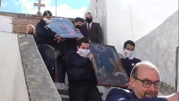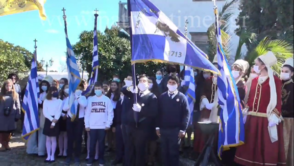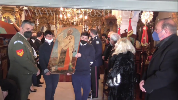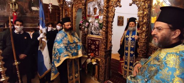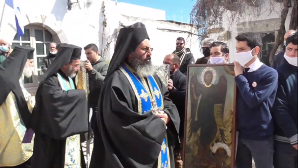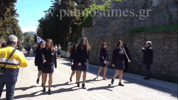 Οι μαθητές της Πατμιάδας Σχολής, οι οποίοι βρίσκονταν στη σημαία, συμμετείχαν στην περιφορά των ιερών εικόνων στις πλατείες Αγίας Λεβιάς, Παναγίας Διασώζουσας και Δημαρχείου.