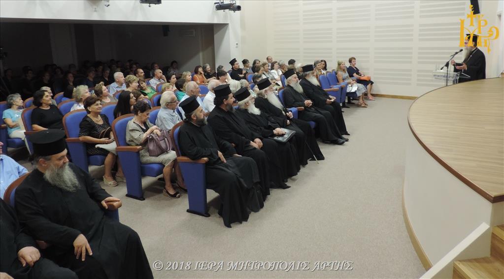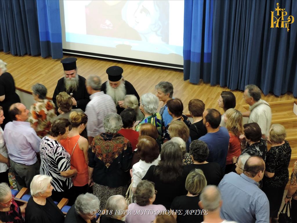 Στην συνέχεια, στο παρακείμενο Πνευματικό Κέντρο της Ιεράς Μητροπόλεως Άρτης, ο Σεβασμιώτατος Μητροπολίτης Ἀργολίδος κ. Νεκτάριος, καθήλωσε το κοινό ομιλώντας για την Γερόντισσα Γαβριηλία Παπαγιάννη, την «Γερόντισσα της Χαράς», όπως την χαρακτηρίζει ο τίτλος του νεοκυκλοφορηθέντος βιβλίου των Εκδόσεων «ΕΠΙΣΤΡΟΦΗ”