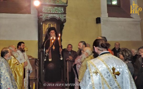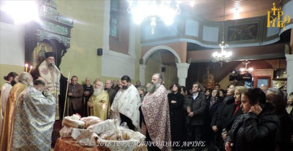 Την Τρίτη 11 Δεκεμβρίου 2018, το απόγευμα, στον Ιερό Ναό του Αγίου Σπυρίδωνος στην πόλη της Άρτης ετελέσθη Αρχιερατικός πανηγυρικός Εσπερινός, προεξάρχοντος του Σεβασμιωτάτου Μητροπολίτου Άρτης, κ. Καλλινίκου.