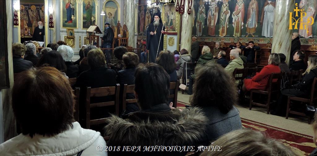 Την Πέμπτη, 29 Νοεμβρίου 2018, το απόγευμα, ετελέσθη Μέγας Εσπερινός, επί τη μνήμη του Αγίου Ενδόξου Αποστόλου Ανδρέου του Πρωτοκλήτου, στον ενοριακό Ιερό Ναό Αγίου Γεωργίου της πόλεως Άρτης, χοροστατούντος του Σεβασμιωτάτου Μητροπολίτου Άρτης κ. Καλλινίκου.