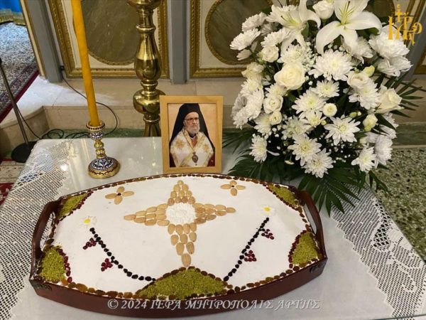 Στο πέρας της Θείας Λειτουργίας τελέσθηκε το τεσσαρακονθήμερο Μνημόσυνο του Μακαριστού Επισκόπου Χριστιανουπόλεως Παύλου (Λάιου), ο οποίος ήταν γεννημένος στην Άρτα στις 30 Ιουνίου 1938 και εκοιμήθη ως εφησυχάζων Αρχιερεύς, στις 17 Σεπτεμβρίου 2024, στην Αδελαΐδα Αυστραλίας.