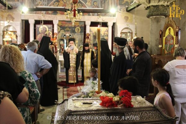 Στην Ιερά Ακολουθία χοροστάτησε ο Σεβασμιώτατος Μητροπολίτης Άρτης κ. Καλλίνικος, πλαισιωμένος από ιερείς της Μητροπόλεως και πλήθος πιστών που προσήλθαν με ευλάβεια.