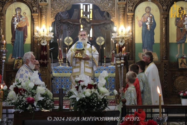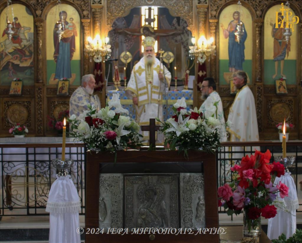 Στον ενοριακό Ιερό Ναό του Αγίου Γεωργίου, στο Κομπότι Άρτης, όπου φιλοξενείται αυτές τις ημέρες η Ιερά Εικόνα της Παναγίας της Ροβέλιστας, λειτούργησε ο Σεβασμιώτατος Μητροπολίτης Άρτης κ. Καλλίνικος το πρωί της Κυριακής 29 Σεπτεμβρίου 2024.