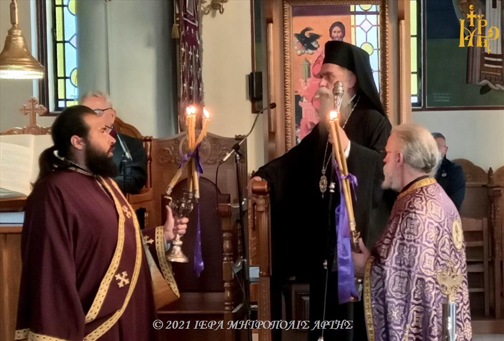 Την Μεγάλη Τρίτη, 27 Απριλίου 2021, το εσπέρας, στην ενορία Παμμεγίστων Ταξιαρχών της πόλεως Άρτης, ο Σεβασμιώτατος Μητροπολίτης Άρτης κ. Καλλίνικος χοροστάτησε στην Ακολουθία του Νυμφίου.