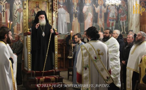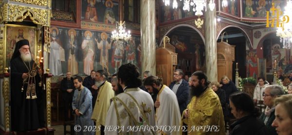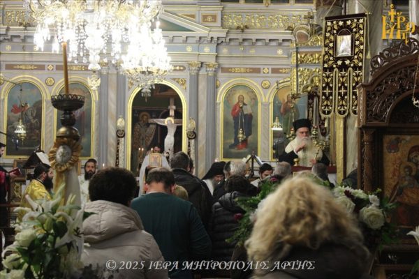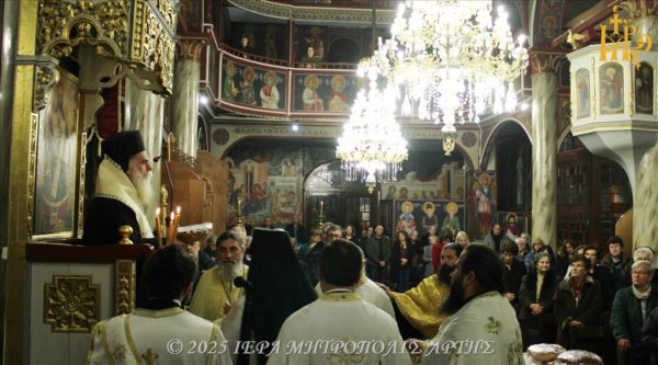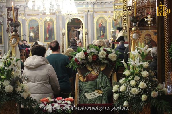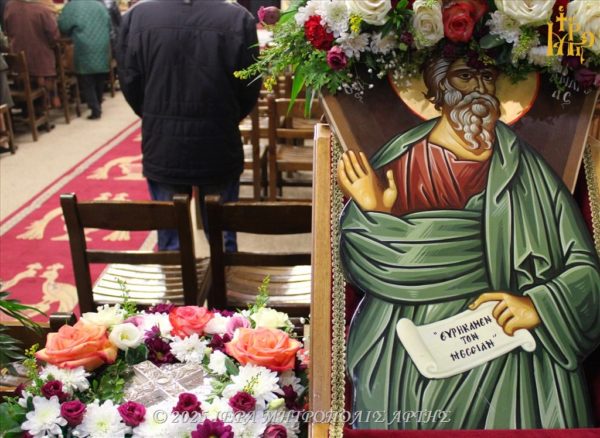 Πανηγυρικός Εσπερινός τελέσθηκε χθες στον ενοριακό Ιερό Ναό Αγίου Γεωργίου στην πόλη της Άρτας, προεξάρχοντος του Σεβασμιωτάτου Μητροπολίτου Άρτης κ. Καλλινίκου, με αφορμή τη μνήμη του Αγίου Ενδόξου Αποστόλου Ανδρέου του Πρωτοκλήτου.