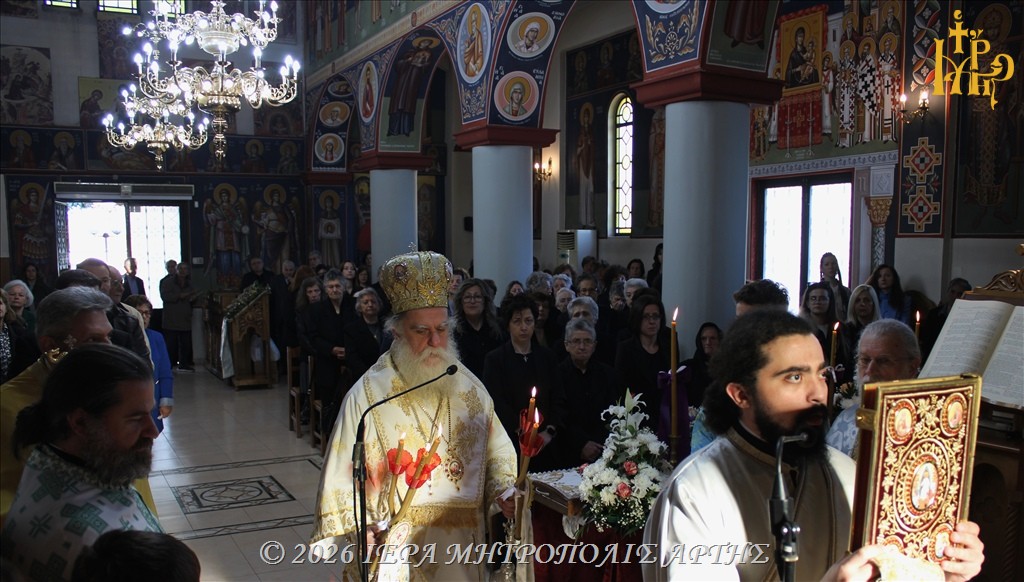Την Κυριακή των Μυροφόρων, 26 Απριλίου 2026, το πρωΐ, ο Σεβασμιώτατος Μητροπολίτης Άρτης κ. Καλλίνικος λειτούργησε στον ενοριακό Ιερό Ναό Παμμεγίστων Ταξιαρχών, στη πόλη της Άρτας.