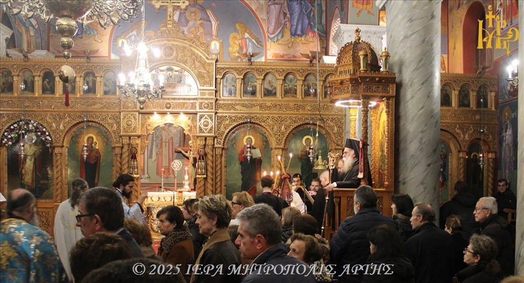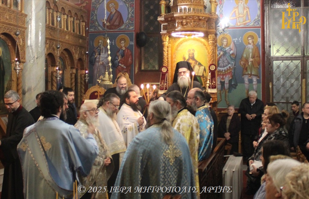 Την Παρασκευή 5 Δεκεμβρίου 2025, το απόγευμα, ετελέσθη με λαμπρότητα ο Μέγας Εσπερινός στον πανηγυρίζοντα ενοριακό Ιερό Ναό του Αγίου Νικολάου στην πόλη της Άρτας, επί τη μνήμη του θαυματουργού Αγίου, προστάτη των ναυτικών και των ταξιδιωτών.