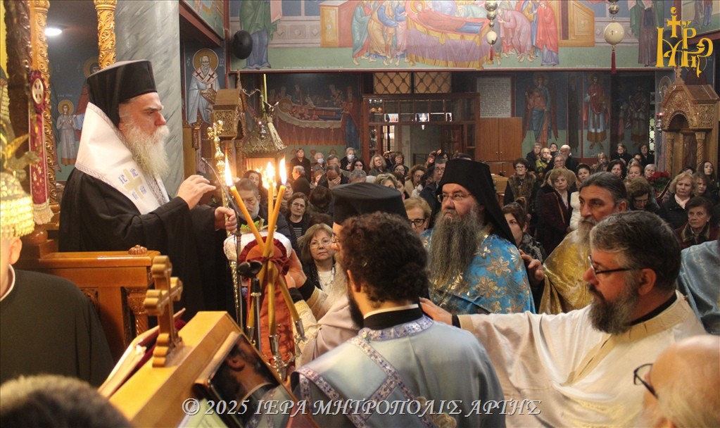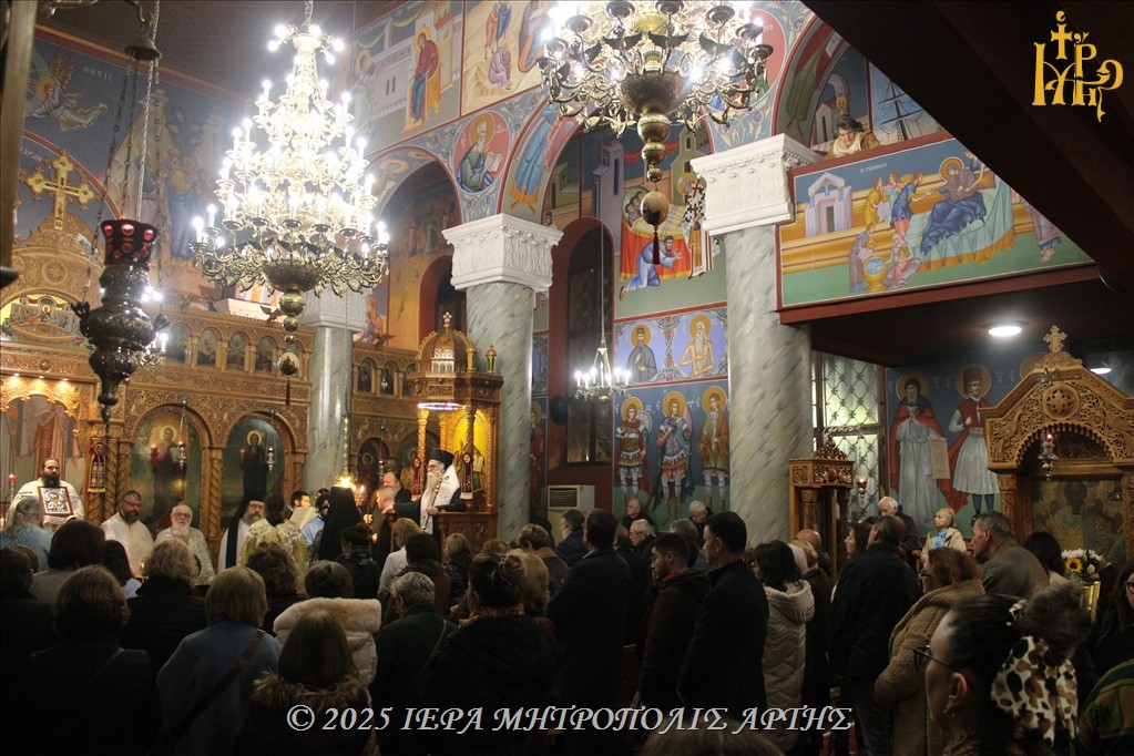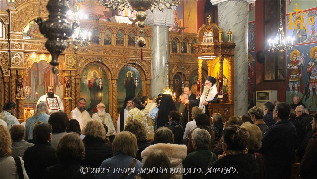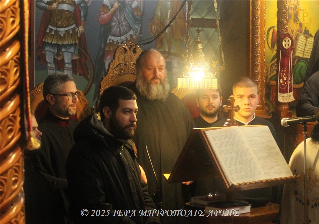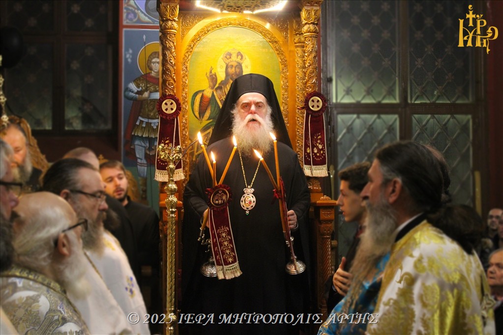 Στην Ακολουθία χοροστάτησε ο Σεβασμιώτατος Μητροπολίτης Άρτης κ. Καλλίνικος, πλαισιωμένος από κληρικούς και πιστούς, οι οποίοι προσήλθαν με ευλάβεια για να τιμήσουν τον Άγιο και να λάβουν την ευλογία του.