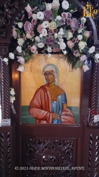 Την Πέμπτη 6 Ιουλίου 2023, το απόγευμα, στον Ιερό Ναό της Αγίας Σοφίας της πόλεως Άρτης, τελέσθηκε, επί τη μνήμη της Αγίας Κυριακής, Μέγας Εσπερινός, χοροστατούντος του Σεβασμιωτάτου Μητροπολίτου Άρτης κ. Καλλινίκου.