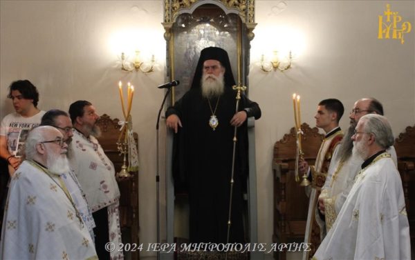 Αρχιερατικός Εσπερινός τελέσθηκε χθες στον Ιερό Ναό του Αγίου Ιωάννου του Θεολόγου, του Πνευματικού Κέντρου της Ιεράς Μητροπόλεως Άρτης, χοροστατούντος του Σεβασμιωτάτου Μητροπολίτου Άρτης κ. Καλλινίκου, εις τιμήν των εν τη Ιερά Μητροπόλει Άρτης Αγίων.