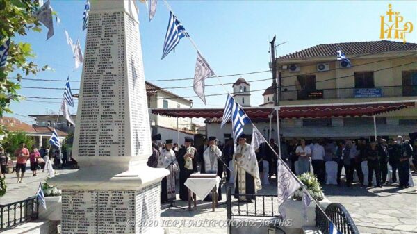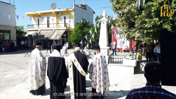 Επιμνημόσυνη Δέηση για τα 317 θύματα (16 Αυγούστου 1943) των Γερμανικών Κατοχικών Δυνάμεων τέλεσε σήμερα το πρωί, Κυριακής 16 Αυγούστου 2020, στο Μαρτυρικό Κομμένο Άρτης, ο Σεβασμιώτατος Μητροπολίτης Άρτης κ. Καλλίνικος.