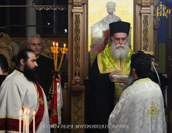 Στον ενοριακό Ιερό Ναό Αγίων Αποστόλων Αμφιθέας Άρτης ετελέσθη το απόγευμα της Τετάρτης 17ης Ιανουαρίου 2024 Μέγας Εσπερινός της εορτής του Αγίου Αθανασίου του Μεγάλου, χοροστατούντος του Σεβασμιωτάτου Μητροπολίτου Άρτης κ. Καλλινίκου.