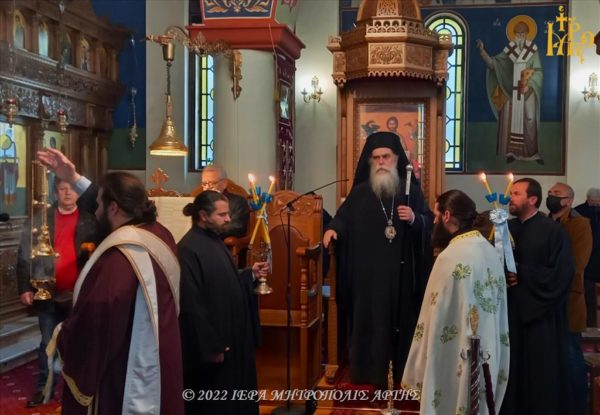 Το απόγευμα της Κυριακής 3 Απριλίου 2022, στον Ιερό Ναό των Παμμεγίστων Ταξιαρχών της πόλεως Άρτης, ο Σεβασμιώτατος Μητροπολίτης Άρτης κ. Καλλίνικος χοροστάτησε στον Ε’ Κατανυκτικό Εσπερινό.
