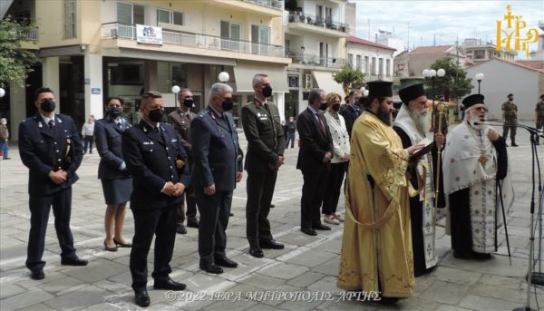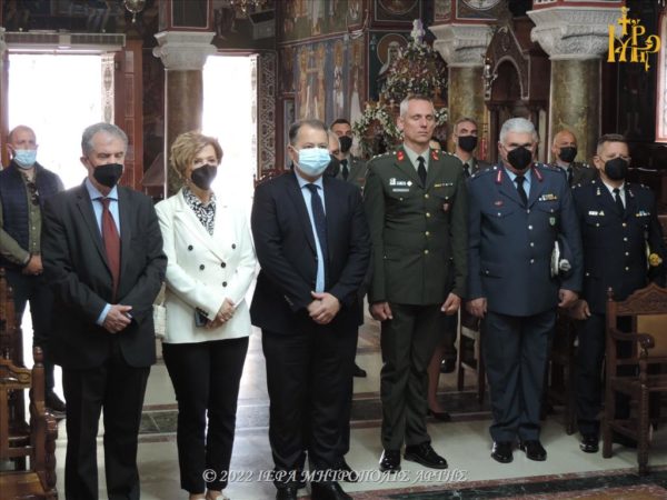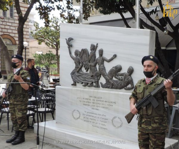 Ακολούθησε κατάθεση στεφάνων στο Μνημείο, που βρίσκεται στον προαύλιο χώρο του Μητροπολιτικού Ναού.