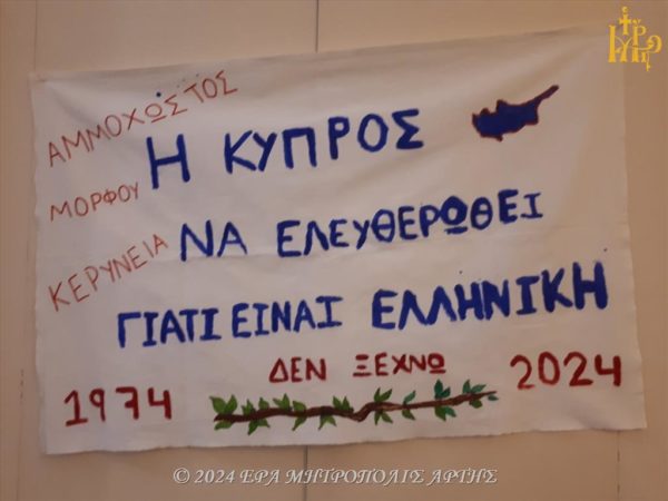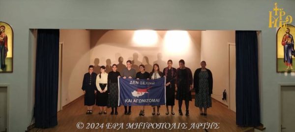 Το Σάββατο 16 Νοεμβρίου 2024, το απόγευμα, στο Πνευματικό Κέντρο «Άγιος Ιωάννης ο Θεολόγος», της Ιεράς Μητροπόλεως Άρτης, πραγματοποιήθηκε, από τις «Χαρούμενες Αγωνίστριες» (Κατηχητικών) Αθηνών, του Συλλόγου Ορθοδόξου Ιεραποστολικής Δράσεως «Ο ΜΕΓΑΣ ΒΑΣΙΛΕΙΟΣ», εκδήλωση μνήμης με τίτλο «Καρτερούμεν», για τα πενήντα χρόνια από την Τουρκική εισβολή στην Κύπρο.