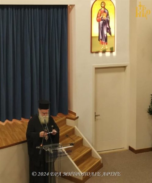 Παρέστη και ο Σεβασμιώτατος Μητροπολίτης Άρτης κ. Καλλίνικος, ο οποίος ευχαρίστησε και συνεχάρη τους συντελεστές της εκδήλωσης και ευχήθηκε «να μην παύσουμε να καρτερούμεν την δικαίωση της Κύπρου».