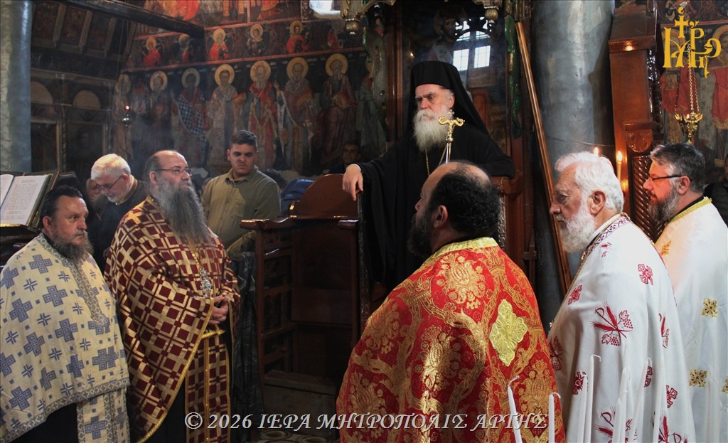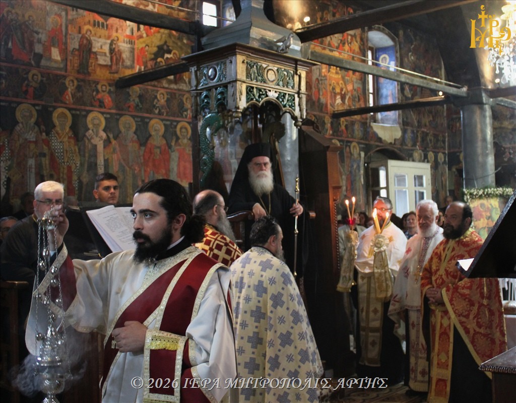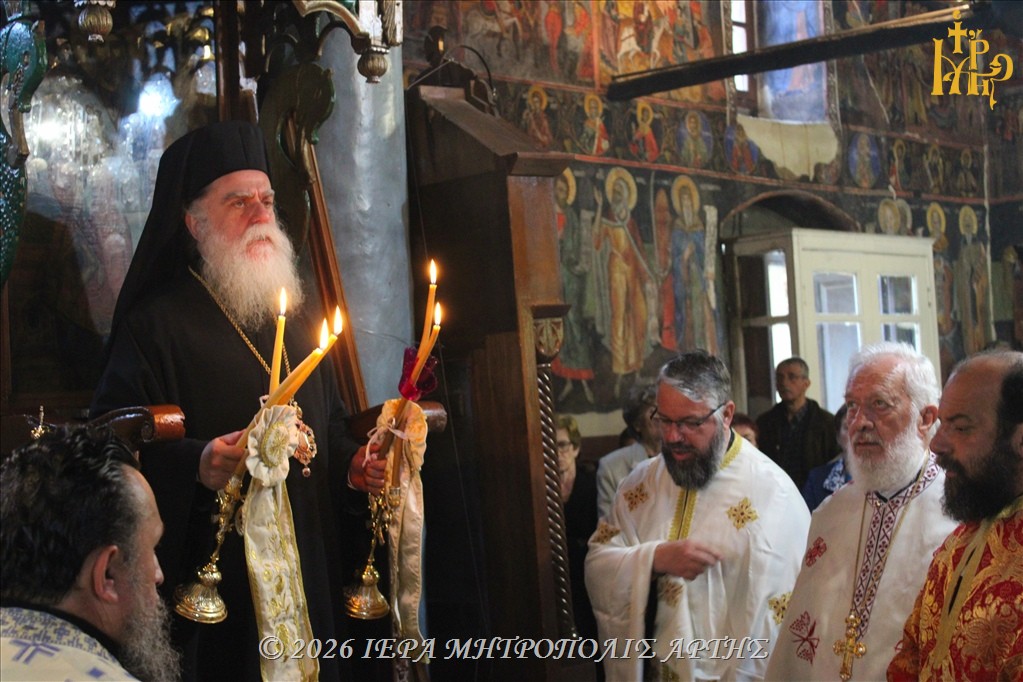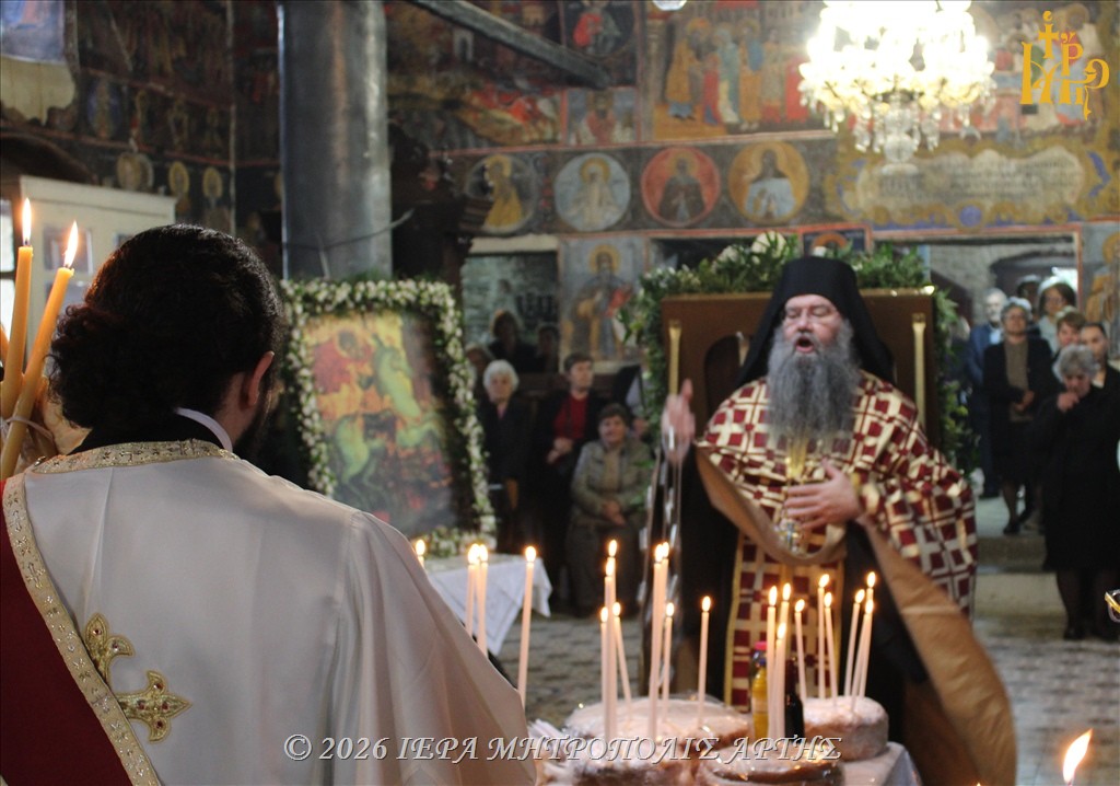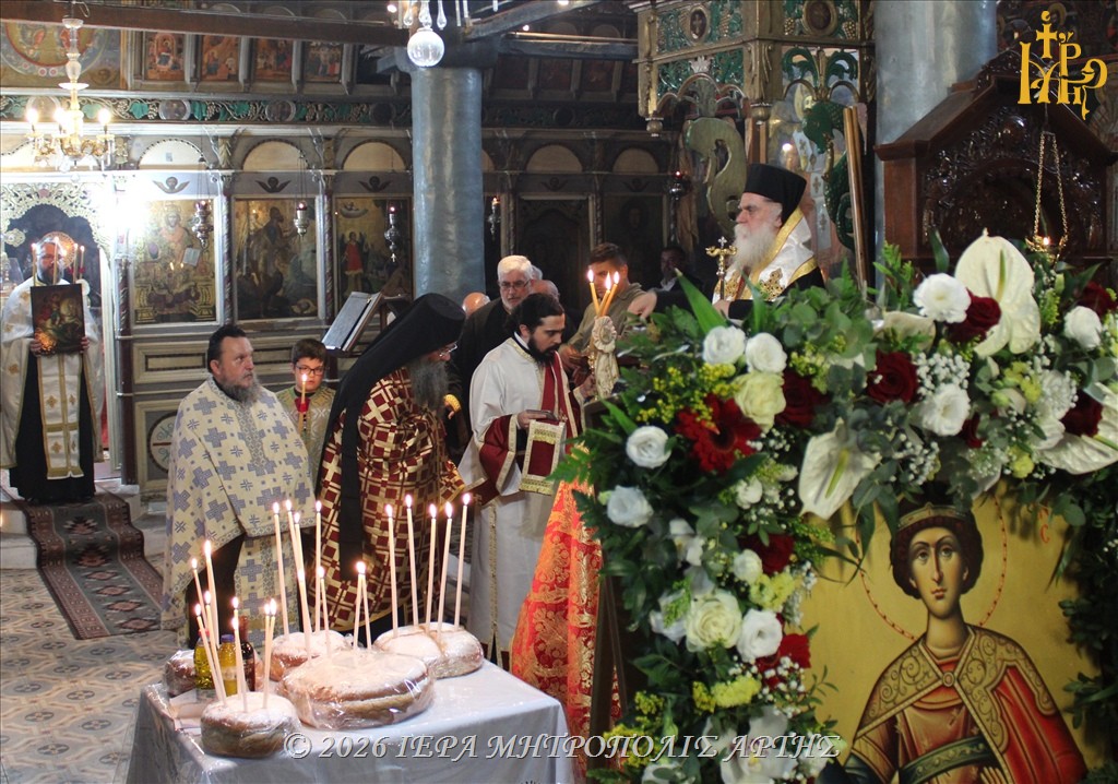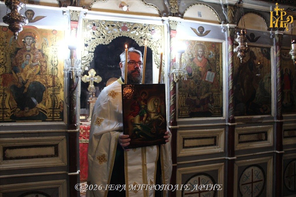 Στον πανηγυρίζοντα παλαιό Ιερό Ναό του Αγίου Μεγαλομάρτυρος Γεωργίου του Τροπαιοφόρου, στο ιστορικό Κομπότι της Άρτας, ετελέσθη την Τετάρτη 22 Απριλίου 2026, το απόγευμα, Μέγας Εσπερινός, χοροστατούντος του Σεβασμιωτάτου Μητροπολίτου Άρτης κ. Καλλινίκου.
