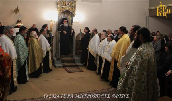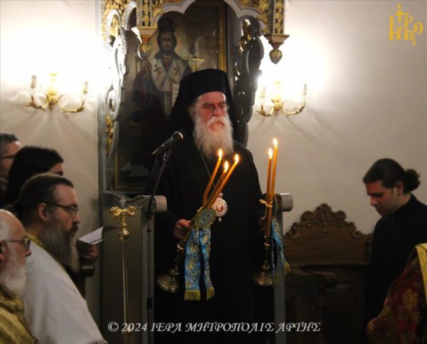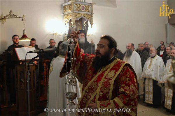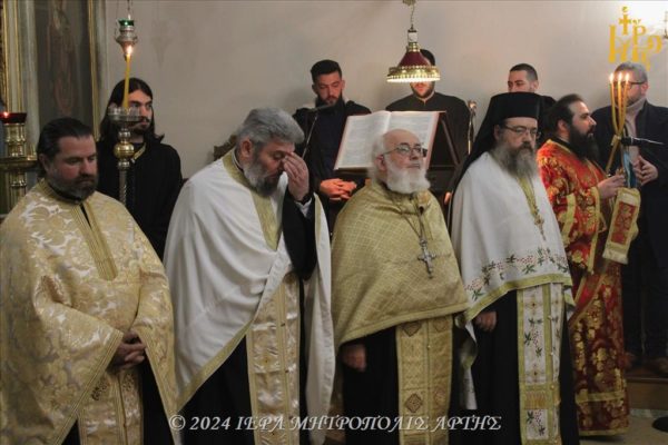 Στον Ιερό Ναό του Αγίου Ιωάννου του Θεολόγου, στο Πνευματικό Κέντρο της Ιεράς Μητροπόλεως Άρτης, προεξάρχοντος του Σεβασμιωτάτου Μητροπολίτου Άρτης κ. Καλλινίκου, τελέσθηκε την Κυριακή 18 Φεβρουαρίου 2024 το απόγευμα, Μέγας Εσπερινός, επί τη μνήμη της ενδόξου Οσιομάρτυρος Φιλοθέης της Αθηναίας.