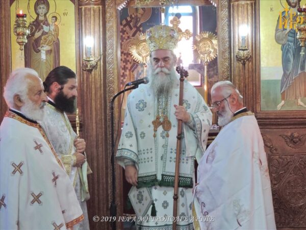 Ο Σεβασμιώτατος, στο Κήρυγμά του, ετόνισε, ότι ο Άγιος Βησσαρίων ακολούθησε τον δρόμο του Σταυρού και γι’ αυτό ζει και θαυματουργεί μετά θάνατον.