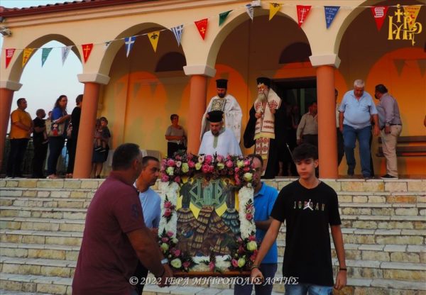 Στο πέρας του Εσπερινού, λιτανεύθη η Ιερά Εικόνα της Μεταμορφώσεως του Σωτήρος, στις οδούς της Ενορίας.