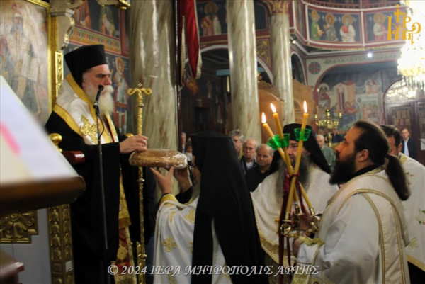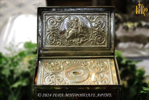 Το Σάββατο 2 Νοεμβρίου 2024, το απόγευμα, ετελέσθη Μέγας Εσπερινός επί τη Ανακομιδή των Ιερών Λειψάνων του Αγίου Μεγαλομάρτυρος Γεωργίου, στον ομώνυμο ενοριακό Ιερό Ναό της πόλεως Άρτης, χοροστατούντος του Σεβασμιωτάτου Μητροπολίτου Άρτης κ. Καλλινίκου.