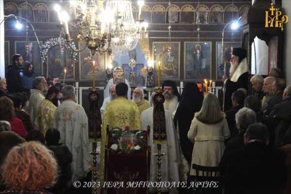 Μέγας Εσπερινός χοροστατούντος του Σεβασμιωτάτου Μητροπολίτου Άρτης κ. Καλλινίκου τελέσθηκε το απόγευμα της Δευτέρας 20 Νοεμβρίου 2023 στο πανηγυρίζον Μητροπολιτικό Παρεκκλήσιο των Εισοδίων της Θεοτόκου εντός του αύλειου χώρου του Επισκοπείου Άρτης.