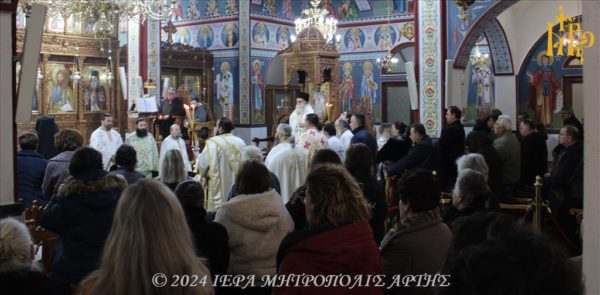 02/12/2024 02/12/2024 Την Κυριακή 1 Δεκεμβρίου 2024, το απόγευμα, στο πλαίσιο της πανηγύρεως του Παρεκκλησίου του Οσίου Πορφυρίου του Καυσοκαλυβίτου, το ευρισκόμενο εντός του Ενοριακού Ιερού Ναού του Αγίου Μαξίμου του Γραικού στην Άρτα, τελέσθηκε εκεί Μέγας Εσπερινός, χοροστατούντος του Σεβασμιωτάτου Μητροπολίτου Άρτης κ. Καλλινίκου. Ο Σεπτός Ποιμενάρχης, στο Κήρυγμά του, τόνισε, ότι «αγιότητα είναι τρόπος Χριστοζωής,...