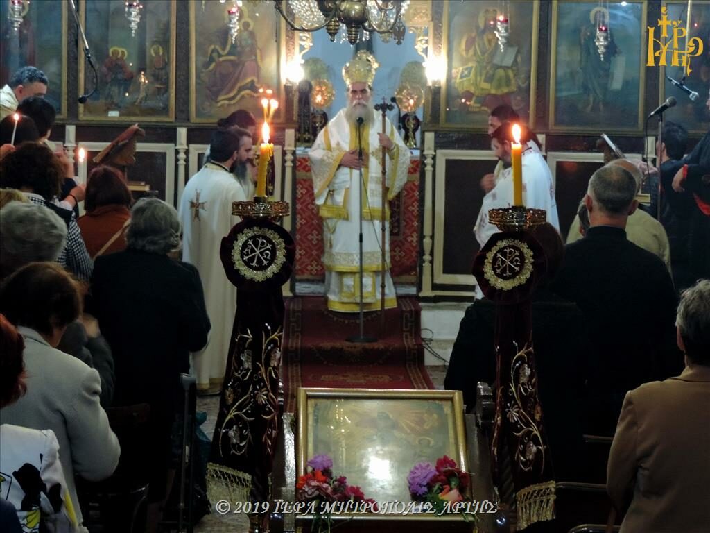 Την Τρίτη 4 Ιουνίου 2019, το βράδυ, επί τη εορτή της Αποδόσεως του Πάσχα, , στον Ιερό Ναό των Εισοδίων της Θεοτόκου-Αγίου Μερκουρίου, στο Επισκοπείο Άρτης ετελέσθη Ιερά Αγρυπνία, προεξάρχοντος του Σεβασμιωτάτου Μητροπολίτου Άρτης κ. Καλλινίκου.