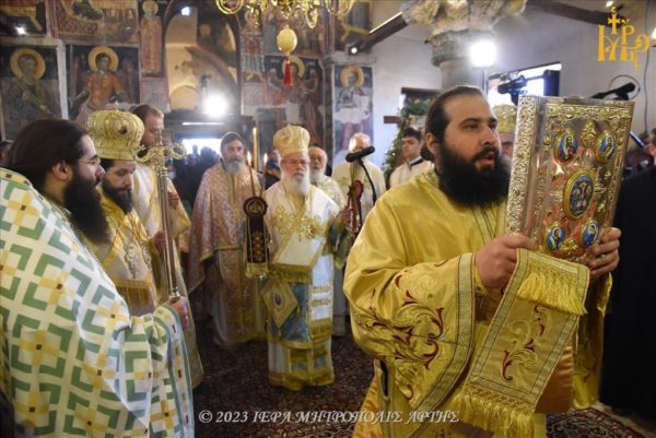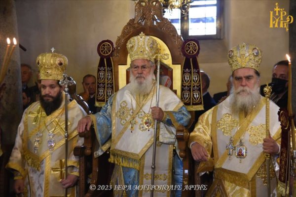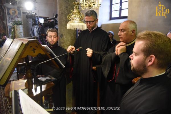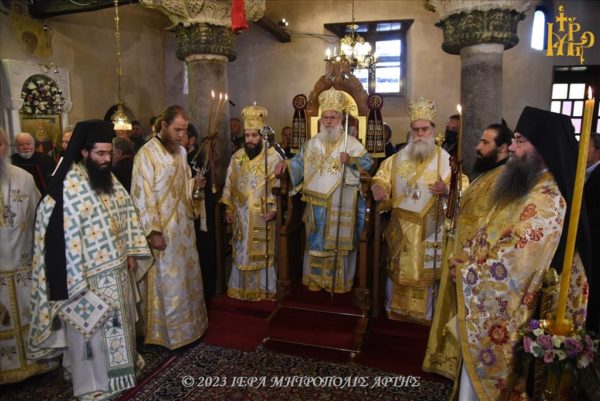 Στην Θεία Λειτουργία συλλειτούργησαν οι Σεβασμιώτατοι Μητροπολίτες πρώην Άρτης κ. Ιγνάτιος, Σισανίου και Σιατίστης κ. Αθανάσιος και Άρτης κ. Καλλίνικος.