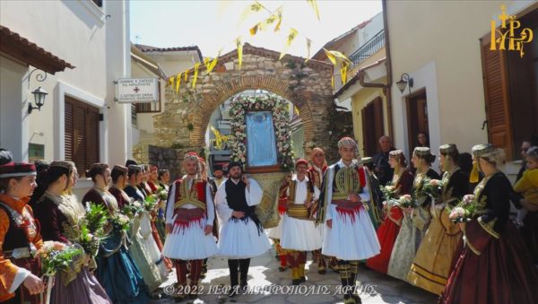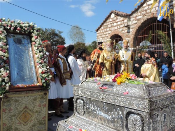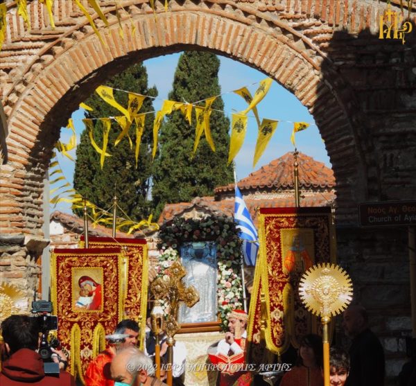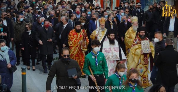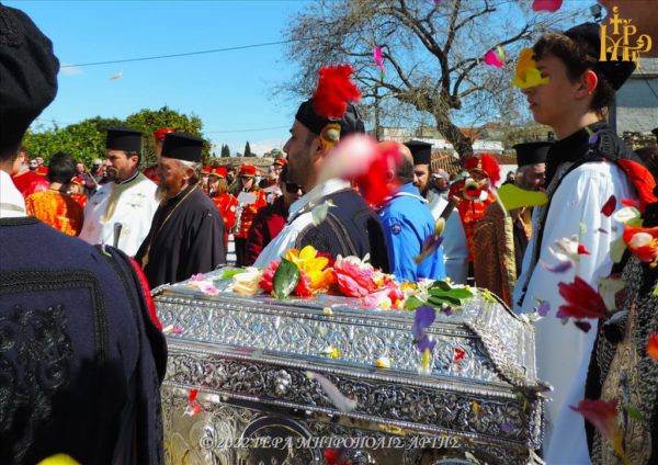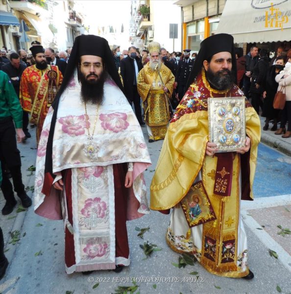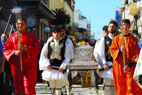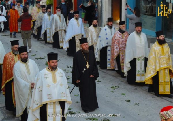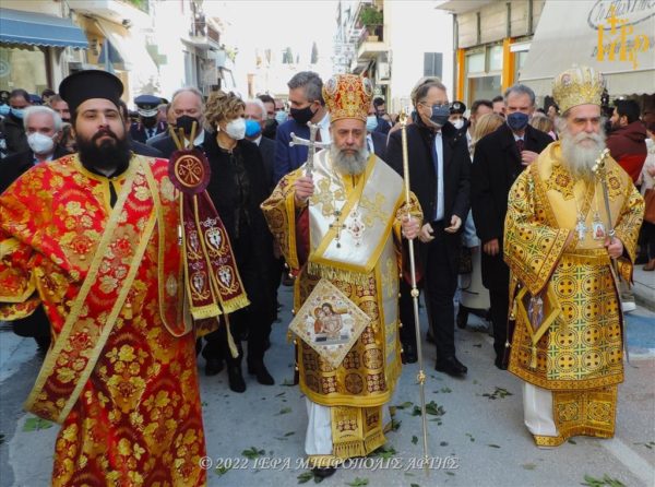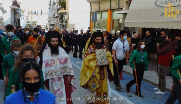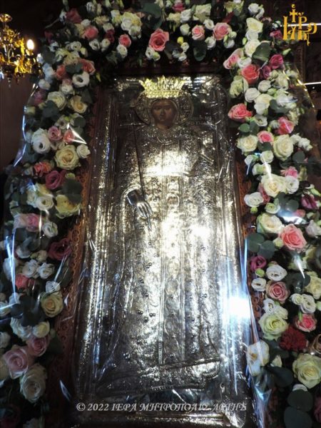 Ακολούθησε λιτάνευση της Ιεράς Εικόνος της Αγίας, καθώς και των χαριτοβρύτων Λειψάνων της, στους κεντρικούς δρόμους της πόλης, προς ευλογία και αγιασμό των κατοίκων και των προσκυνητών, χωρίς όμως, την συμμετοχή μαθητών των Σχολείων για λόγους δημόσιας υγείας.