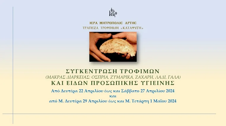 Ι.Μ. Άρτης: Συγκέντρωση τροφίμων για την Τράπεζα Τροφίμων “ΚΑΤΑΦΥΓΗ”