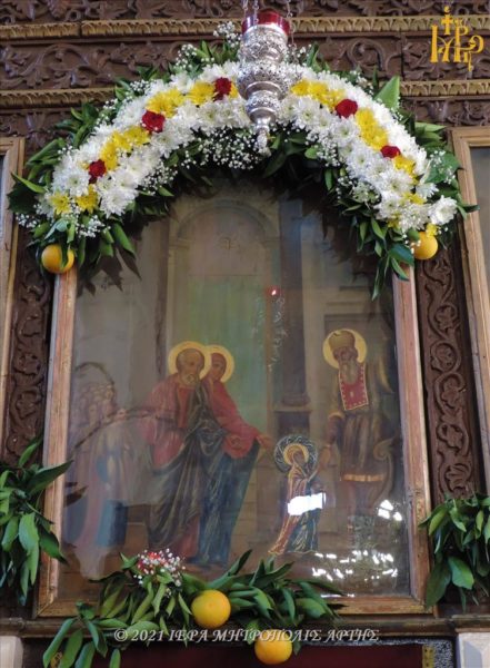 Στο ευρισκόμενο στον αύλειο χώρο του Επισκοπείου Άρτης, πανηγυρίζον Μητροπολιτικό Παρεκκλήσιο των Εισοδίων της Θεοτόκου, ετελέσθη Αρχιερατική Θεία Λειτουργία, ιερουργούντος του Σεβασμιωτάτου Μητροπολίτου Άρτης κ. Καλλινίκου, την Κυριακή 21 Νοεμβρίου 2021.